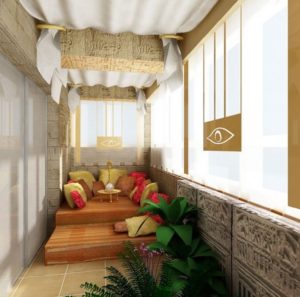 Даже небольшие размеры позволят установить маленькую кровать или диванчик. Можно украсить место декоративными свечами, осветительными элементами, цветами, журнальным столиком и т. п.